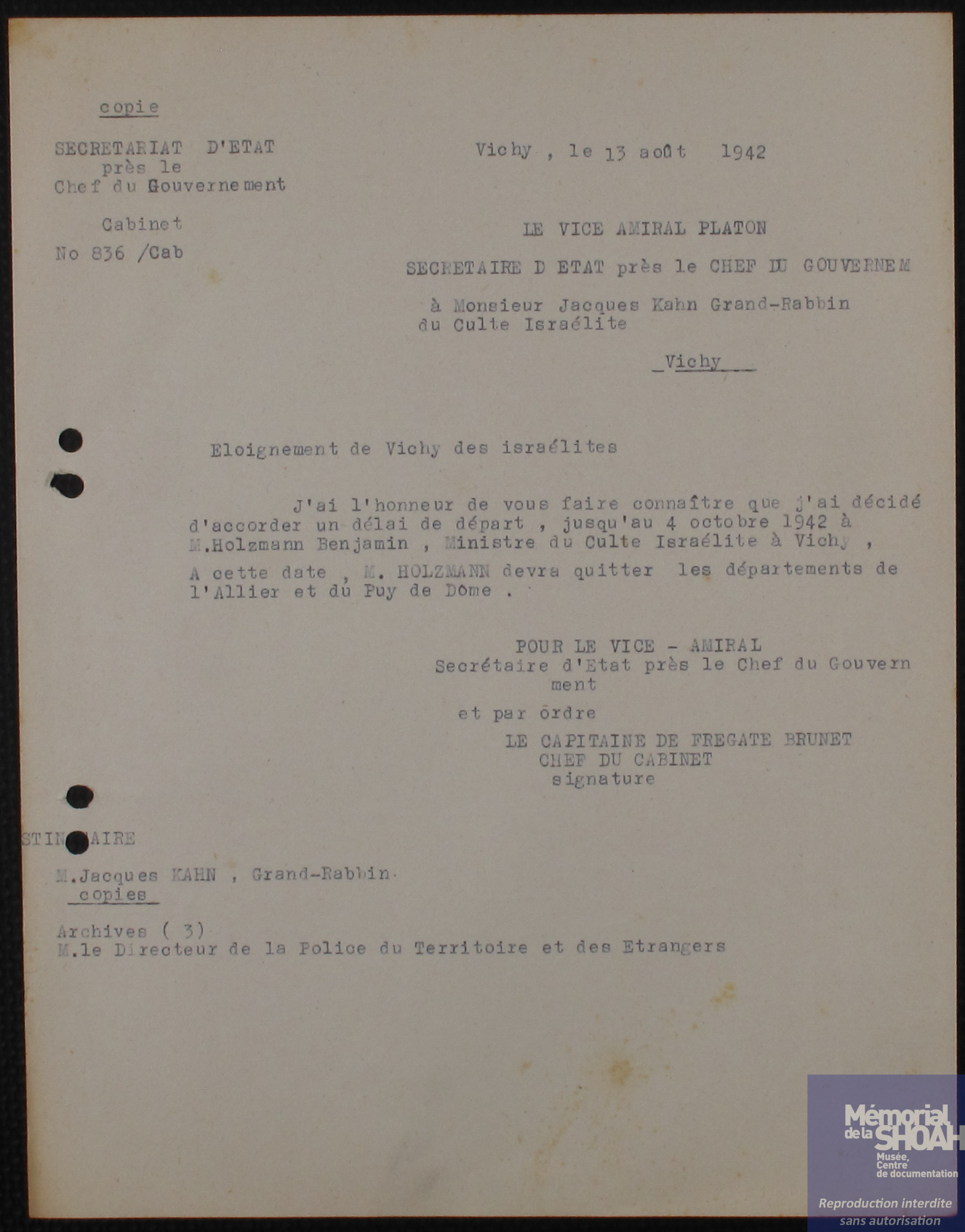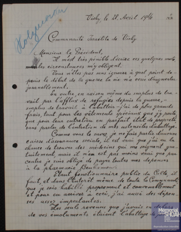 Archives du Mémorial de la Shoah. CMLV- Fonds de la communauté israélite de Vichy.