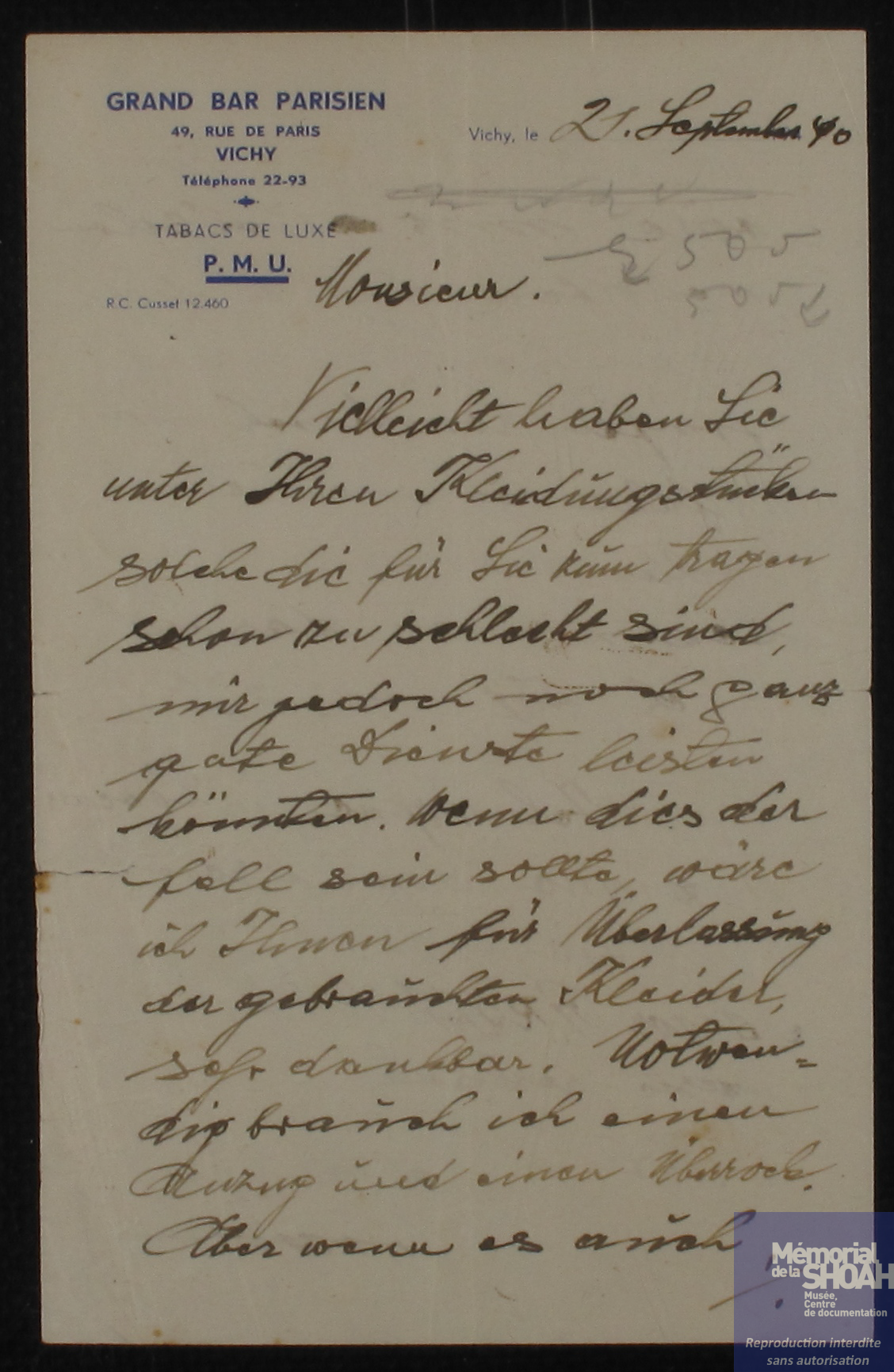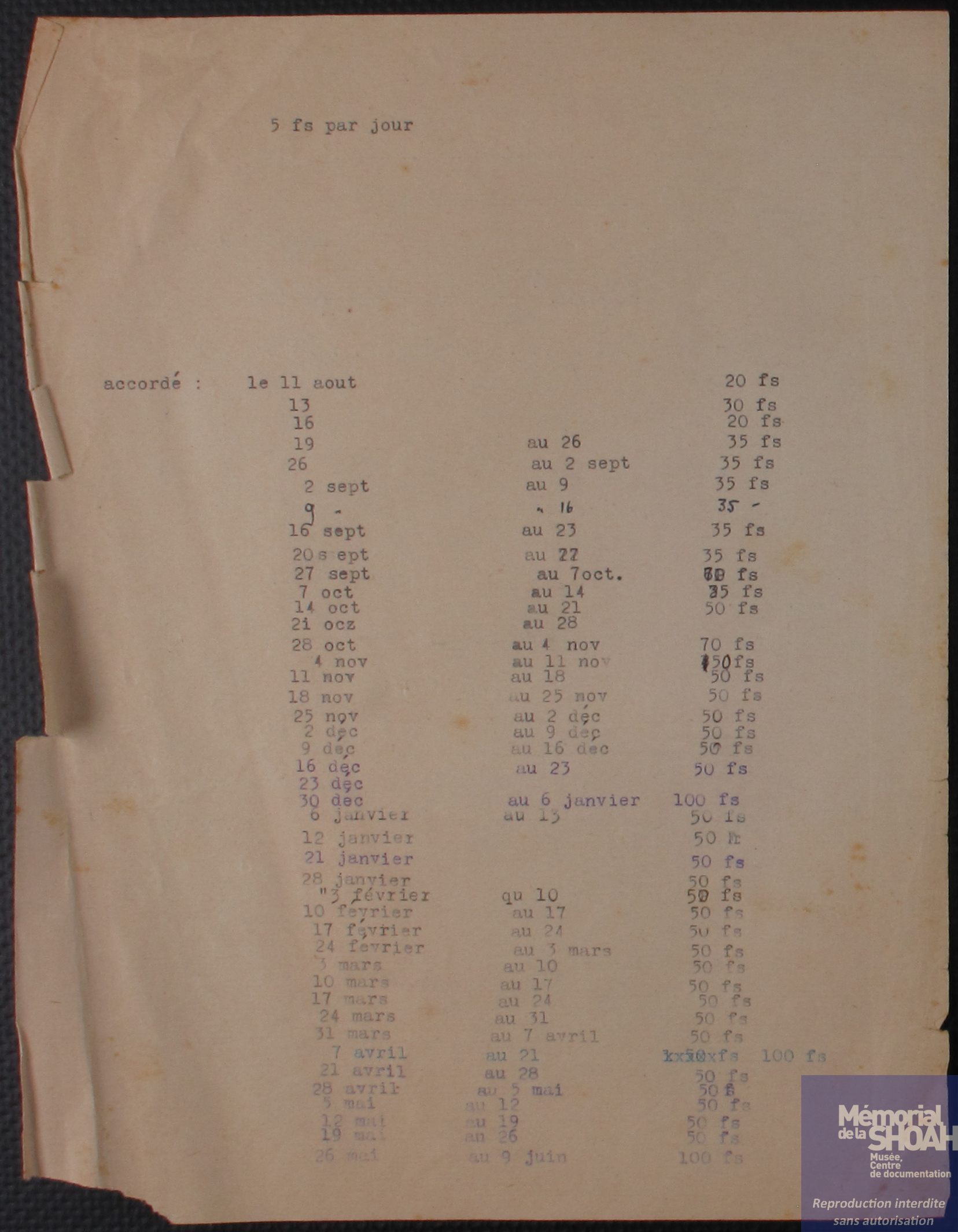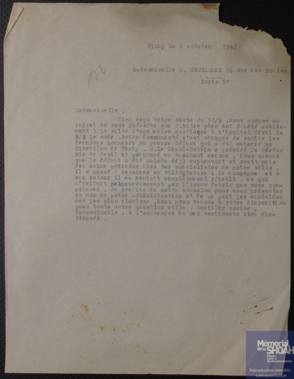 Archives du Mémorial de la Shoah. CMLV- Fonds de la communauté israélite de Vichy.