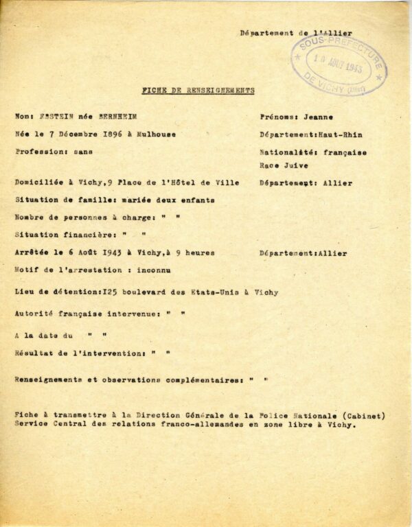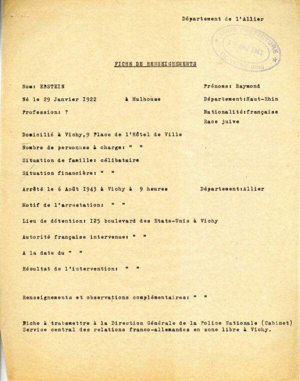 Ceux qui sont autorisés à demeurer dans la capitale provisoire ne sont pas pour autant à l’abri. L’autorisation de séjour leur permet, certes, de préserver un semblant de stabilité — un toit, parfois un emploi, souvent des liens amicaux. Mais ce répit est souvent trompeur : nombre de ceux qui sont ainsi tolérés à Vichy finissent par être arrêtés, puis déportés.