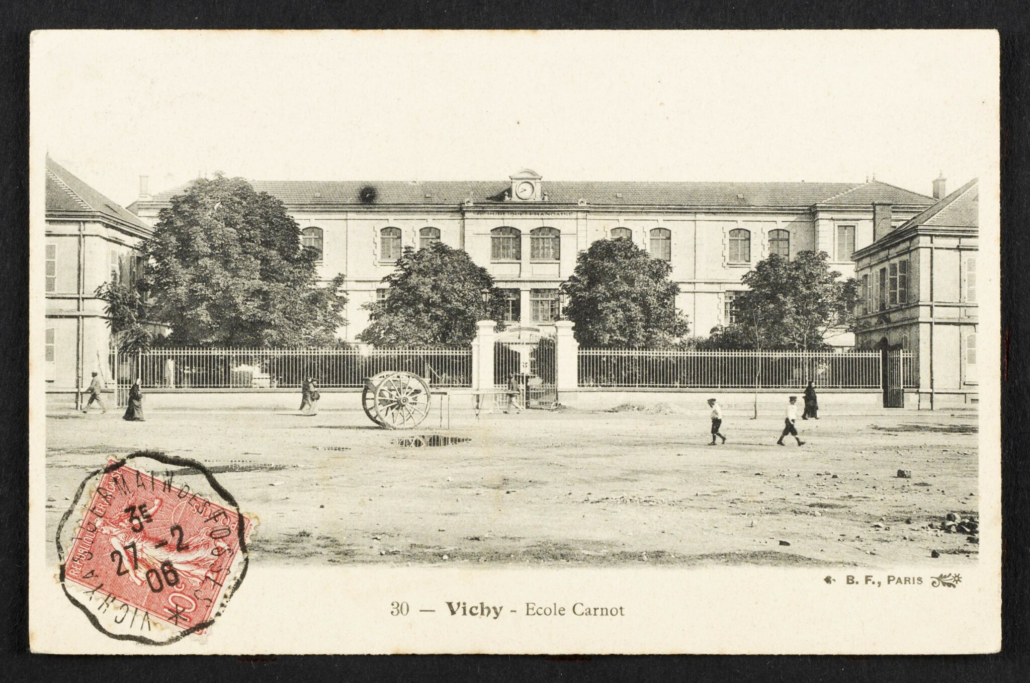 Précision sur l’école Jules Ferry : En 1912, l’école Carnot est scindée en deux établissements distincts : la section d’enseignement primaire élémentaire, accessible par la rue Neuve, conserve l’appellation d’école Carnot ; tandis que la section d’enseignement primaire supérieur, dont l’entrée se trouve place de l’Hôtel de Ville, prend le nom d’école Jules Ferry. Après la guerre, l’école sera rebaptisée Fernand Lafaye, en hommage à l’instituteur résistant.